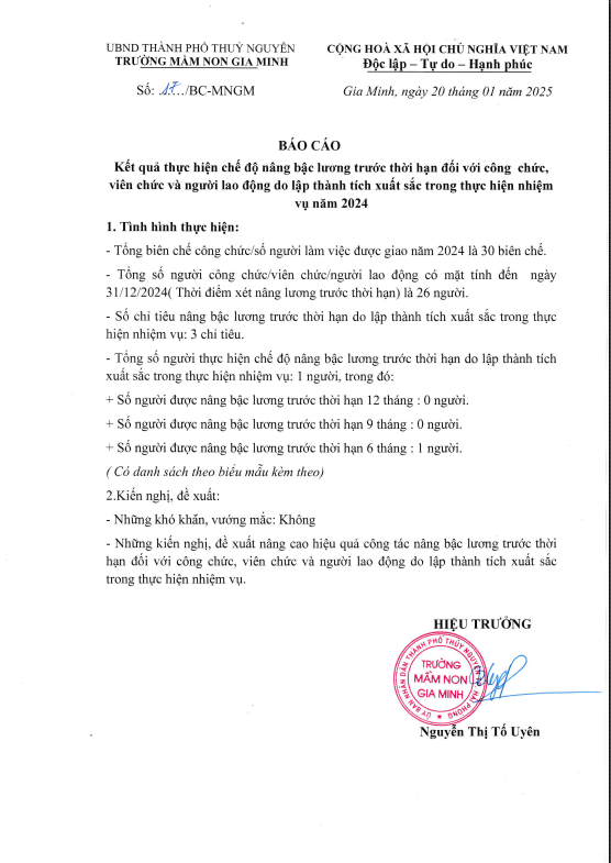 BÁO CÁO KQ thực hiện chế độ nâng bậc lương trước thời hạn đối với CC-VC-NLĐ năm học 2024
