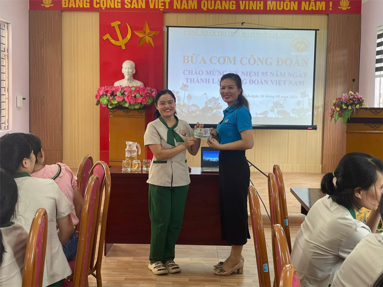 Nhân dịp kỷ niệm 95 năm ngày thành lập Công đoàn Việt Nam (28/7/1929 - 28/7/2024), được sự đồng ý và tạo điều kiện của Ban giám hiệu nhà trường và Ban chấp hành Công đoàn huyện Thủy Nguyên Công đoàn trường Mầm Non Gia Minh đã tổ chức “Bữa cơm Công đoàn” cho CBGVNV trong nhà trường.